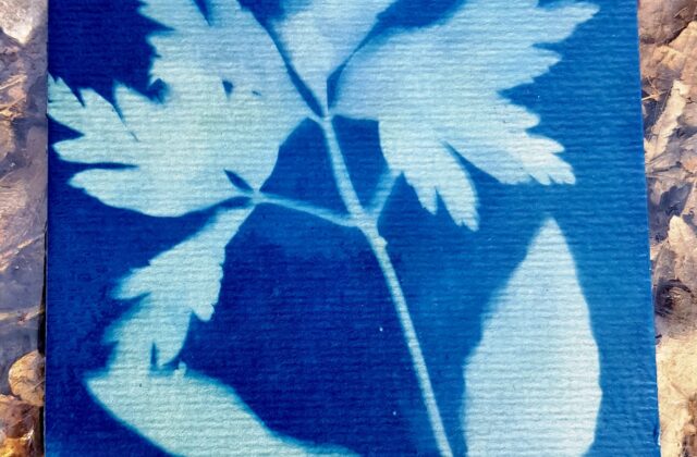 Mode d’emploi : Pour l’atelier prévu, le cyanotype sera réalisé sur un papier de format A5 pré-imprégné de citrate d’ammonium ferrique et de ferricyanure de potassium qui forment une solution photosensible réagissant à la lumière.