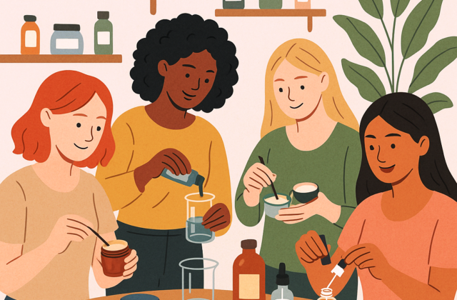 C’est bientôt l’anniversaire de Corinne et trois de ses amies ont décidé de lui offrir un atelier de création de deux produits cosmétiques. Leur choix s’est porté sur une crème visage personnalisée et une gelée exfoliante visage et corps.