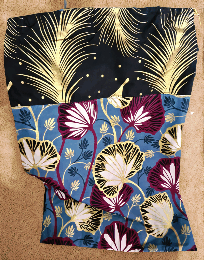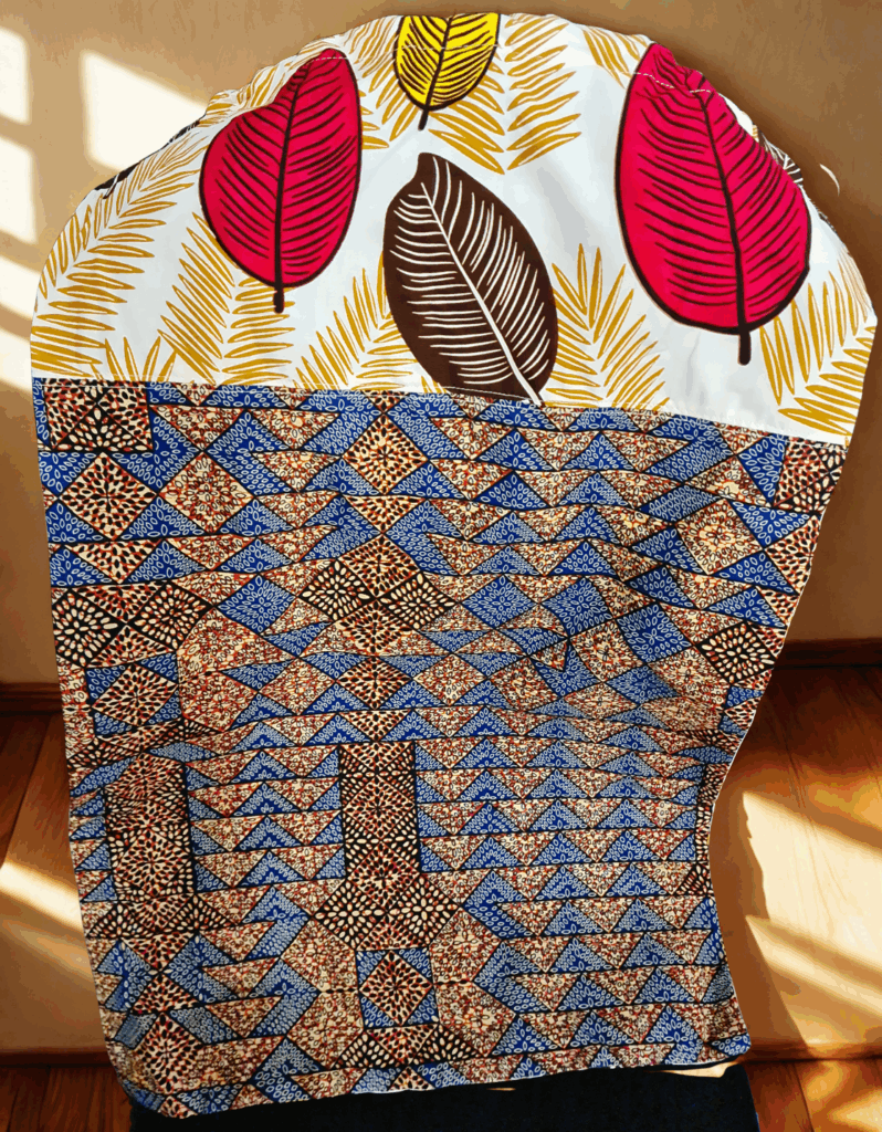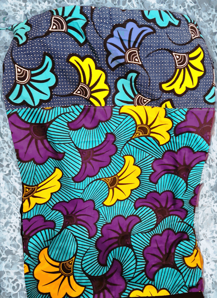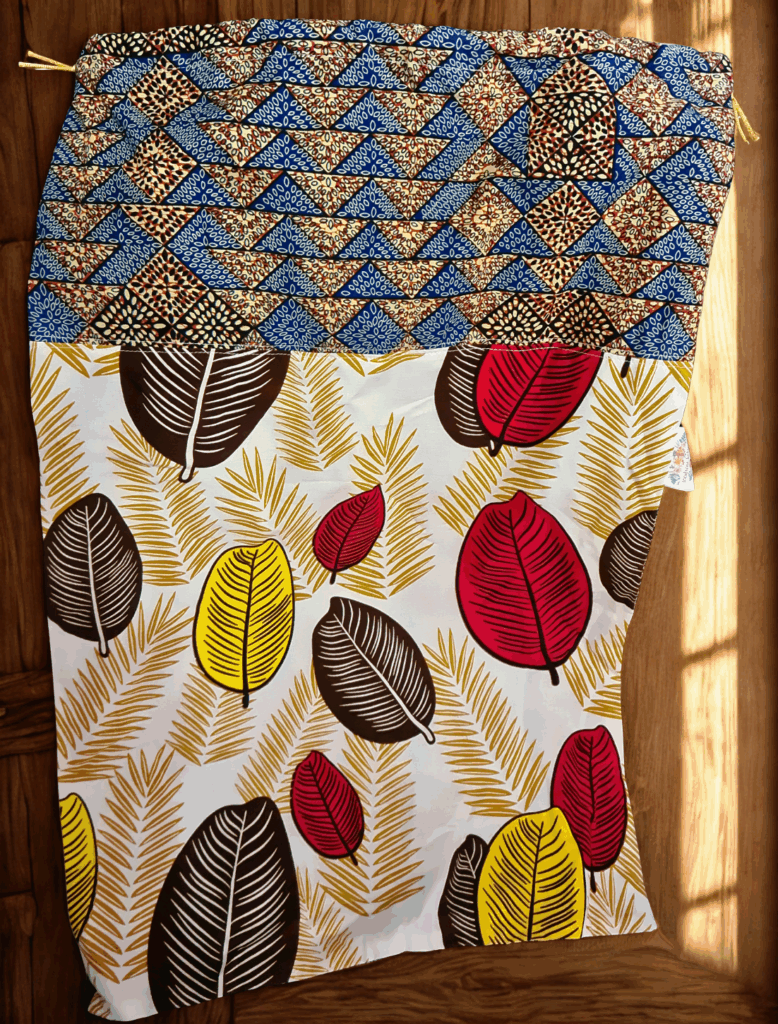 Tissu 100% coton wax, dimensions environ 65×43 cm.