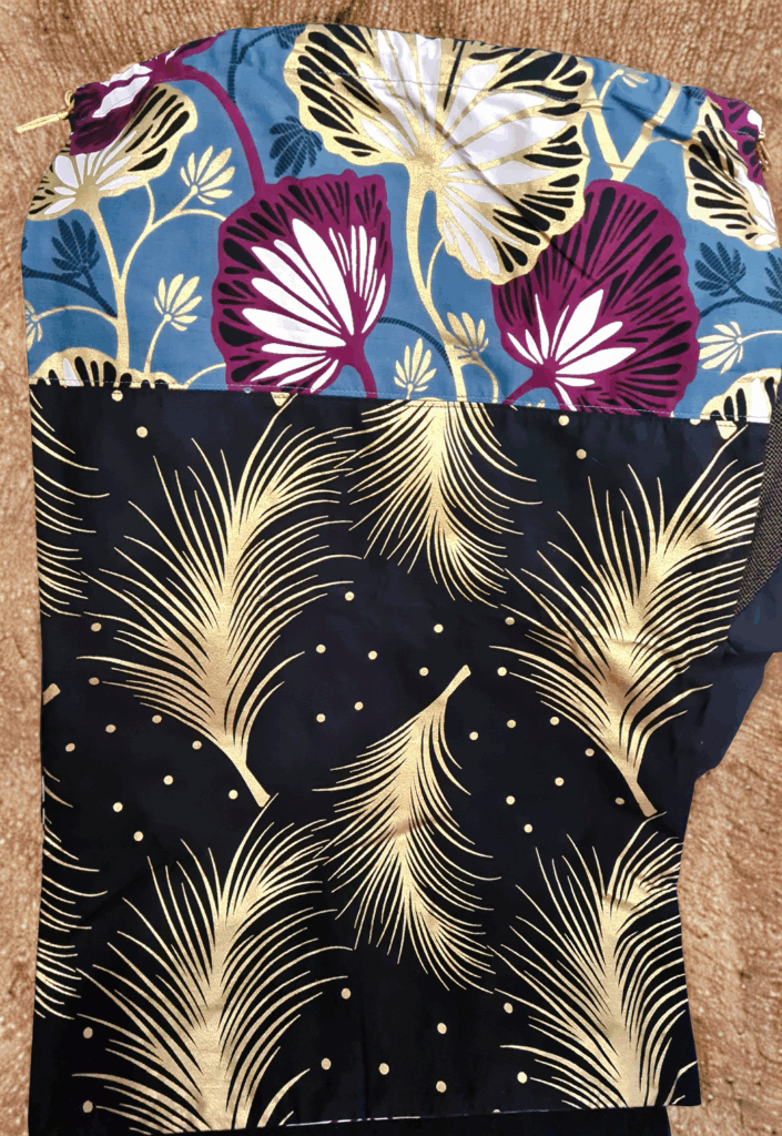 Choisissez votre couleur : blanc et bleu grosses feuilles ou bleu clair et foncé fleurs de lotus ou noir et bleu plumes dorées ou  encore noir et blanc grosses fleurs