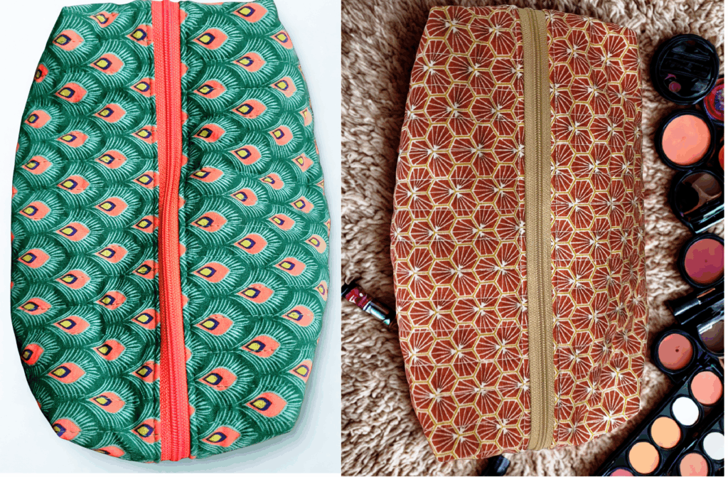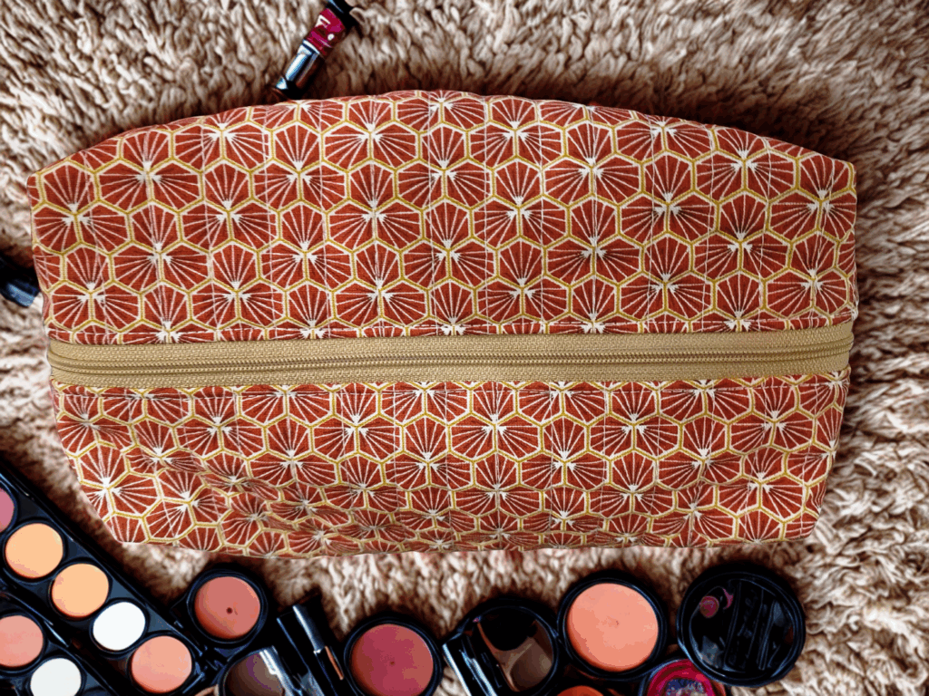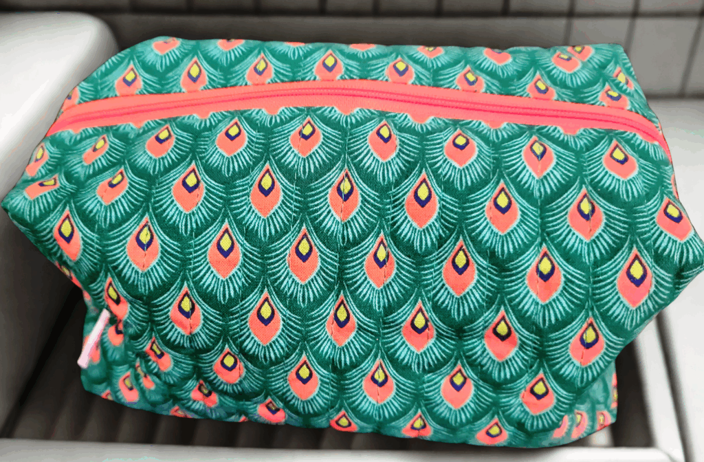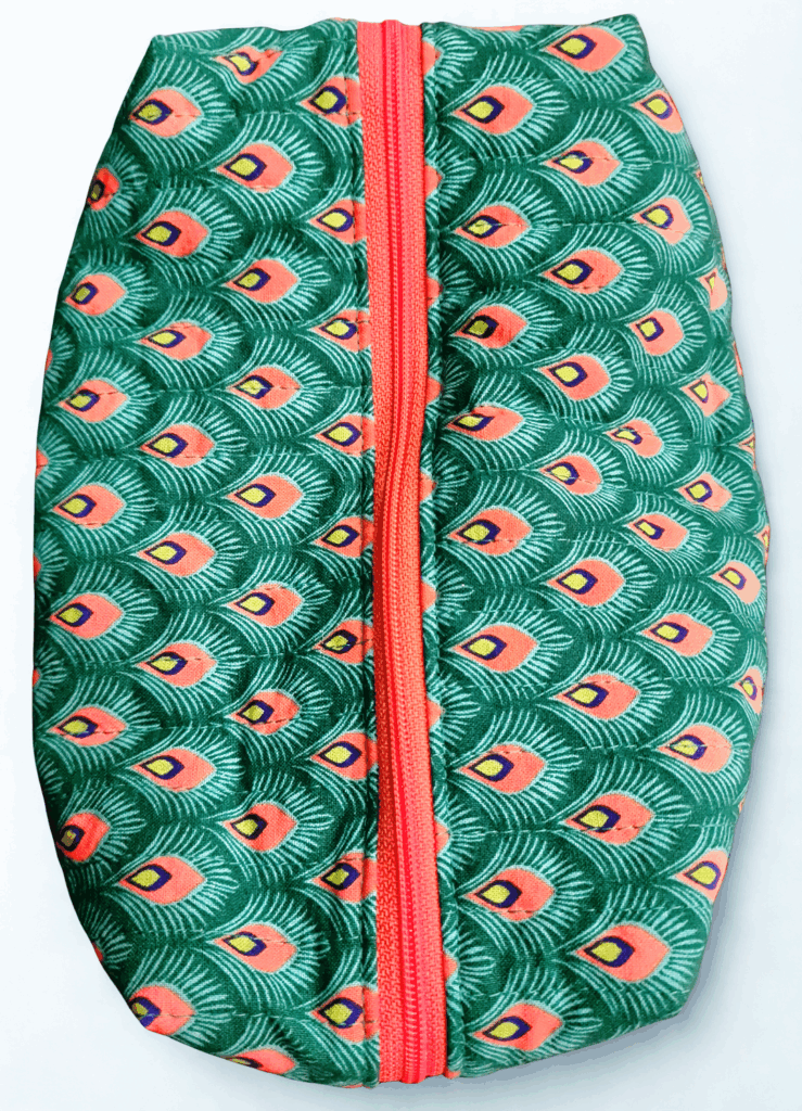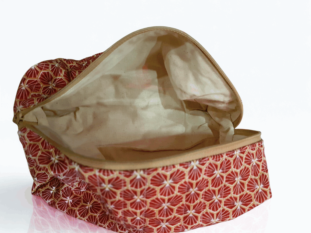 Trousse de toilette matelassée et doublées à l’intérieur avec un tissu uni de couleur assortie.